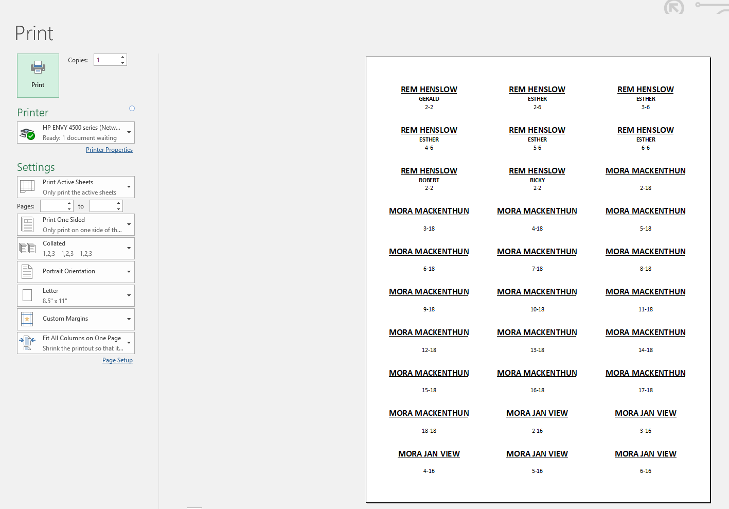 Instead of handwriting each label, automating the labels saved an exponential amount of time. Whether a customer order has 2 or 52 boxes, it always took the same amount of time to make the labels as if the customer had only one box. The result of the Make Labels button populates Sheet1 with labels ready to print.